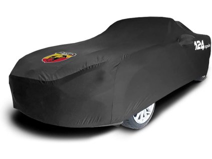 Full Vehicle Cover with poly- stretch material. Black with Abarth logo. Intended for indoor use.