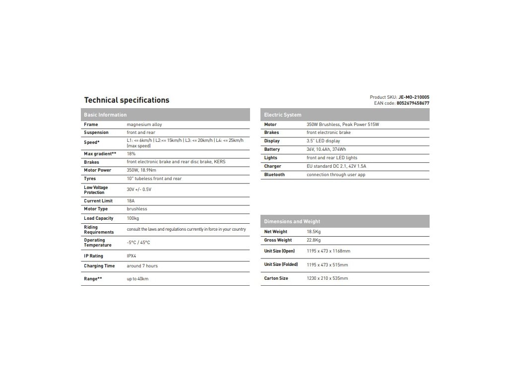 Battery | 36V, 10.4Ah, 374Wh |