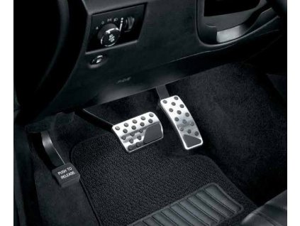 Bright stainless steel covers with black rubber pads, for automatic transmission (gas and brake).