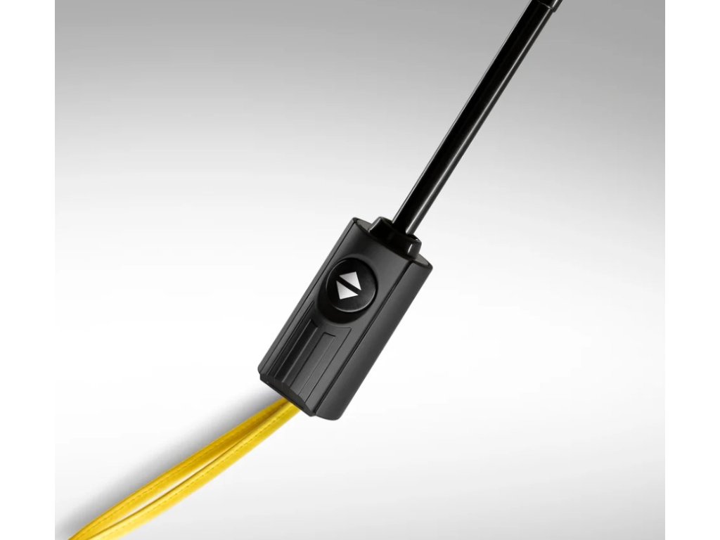 Výsuvný deštník s potiskem loga na vnější straně a kontrastním vzorem na vnitřní straně. Rukojeť s logem a automatickým otevíráním/zavíráním.
